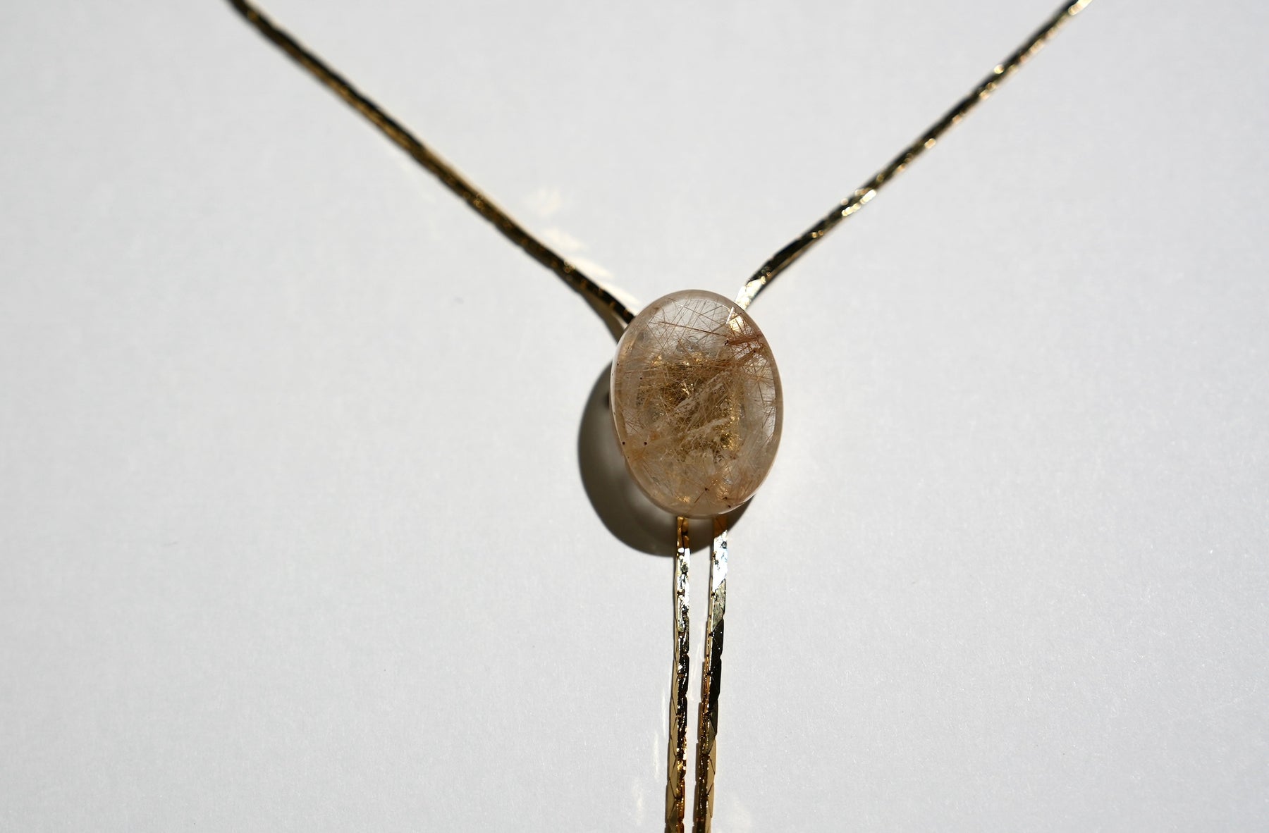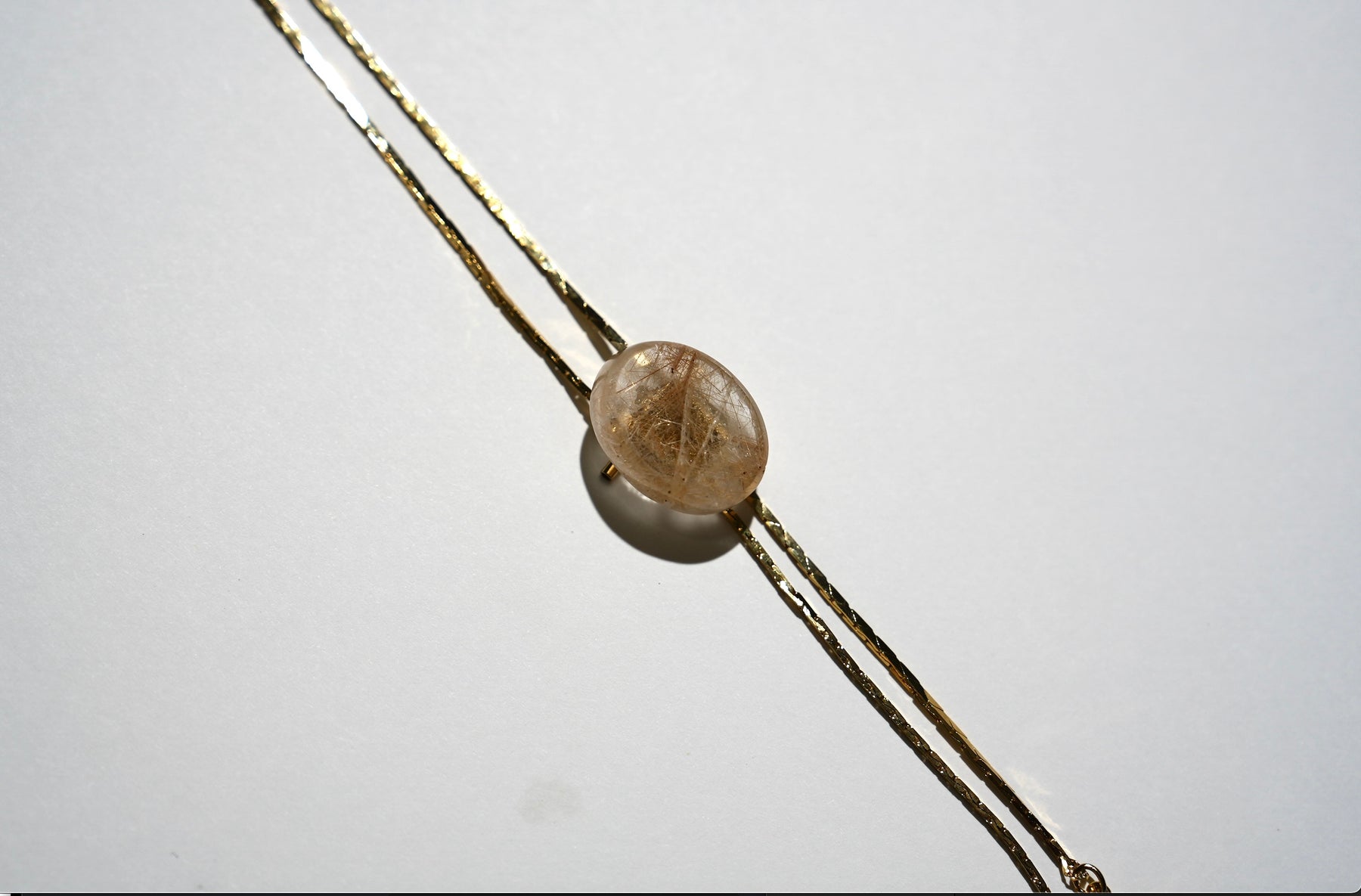 Gold-plated vintage chain with natural Rutilated Quartz cabochon · adjustable bolo