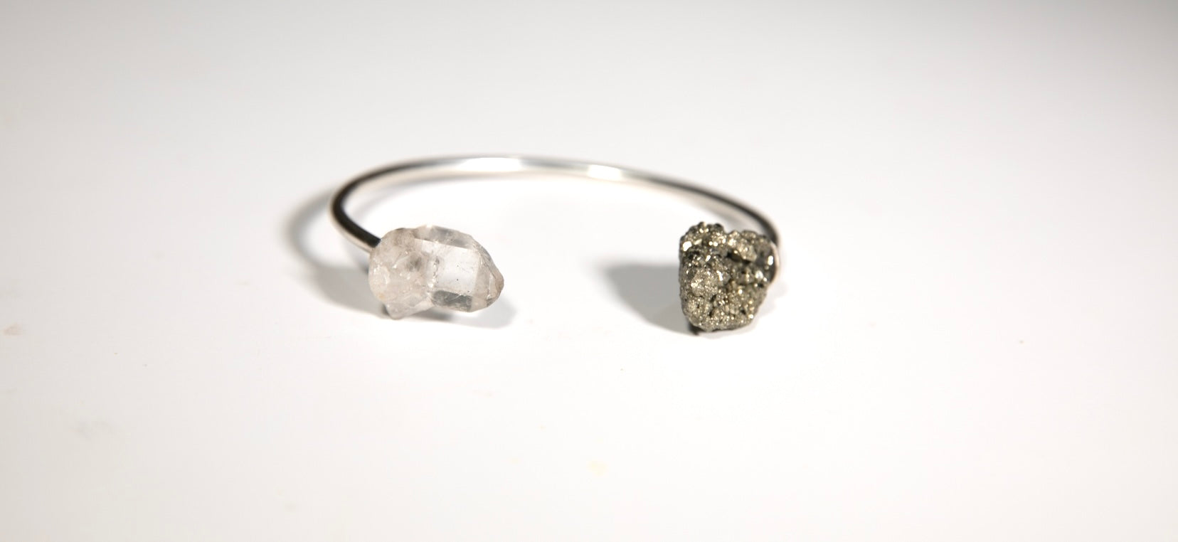 Here’s to more golden outcomes. Think Midas, but modern: not everything turning to metal, everything you touch carrying the power of gold — vibrant, generous, divine. Clear Quartz focuses and amplifies your intention, while Pyrite, nicknamed “Fool’s Gold”, enhances confidence in your field. Together they help you align with your soul so you can manifest from a place of action. Intentionally paired to work together. Each stone is intuitively handpicked by our designer for the energy it carries and crafted in small, mindful batches, so your piece feels uniquely yours.