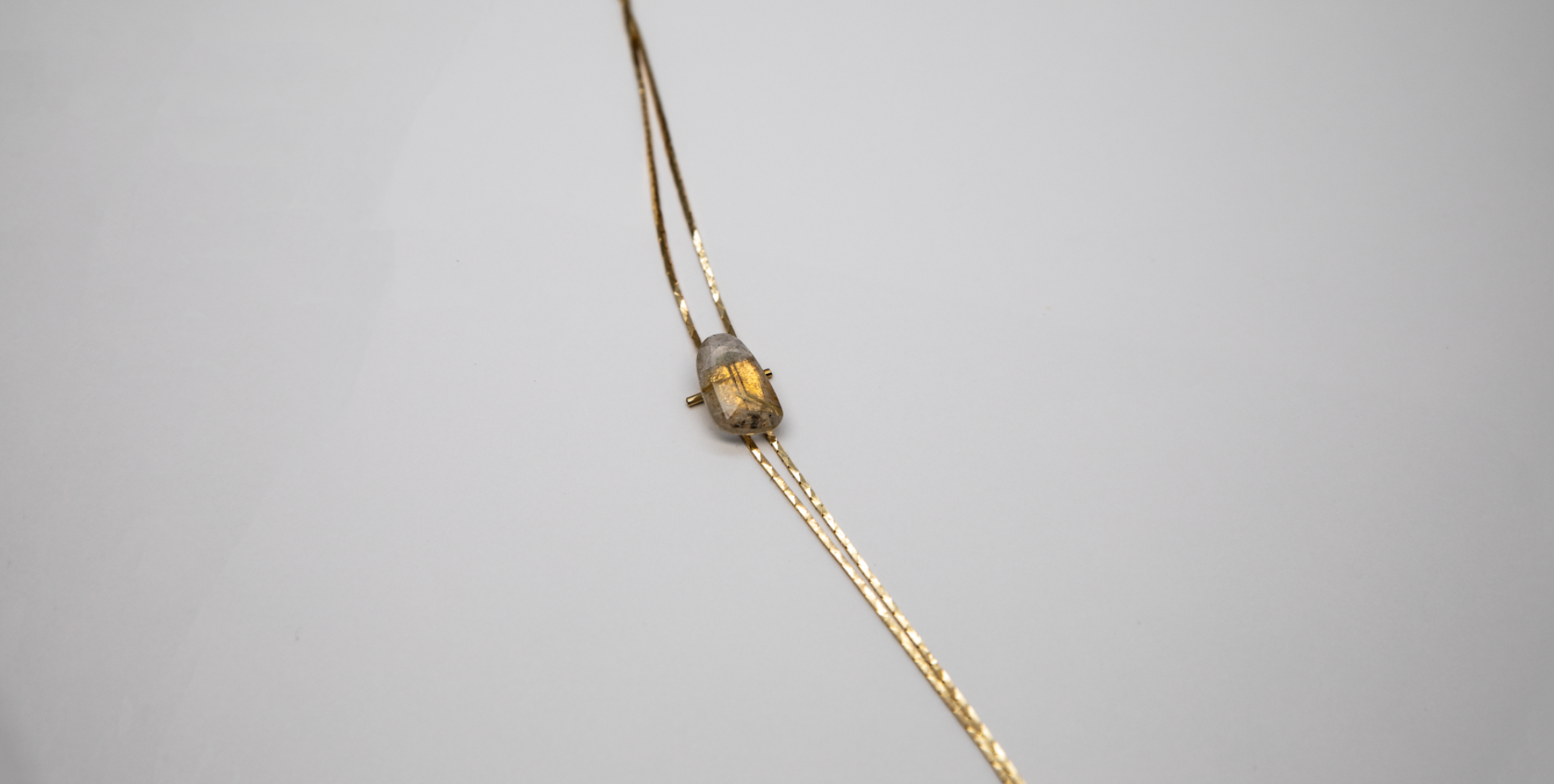Each stone is intuitively handpicked for its feel and set on a vintage gold-plated chain you can slide higher or lower. Simple, striking, and easy, with everything from knits to slip dresses.