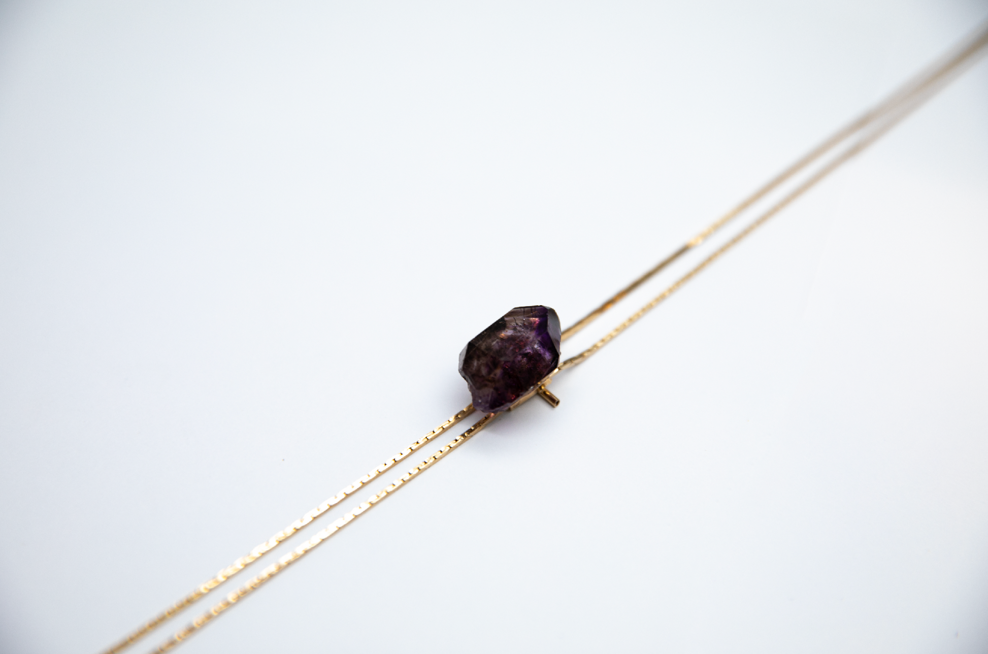 This high-grade amethyst soft lavender to deep violet colours bring a sense of calm into your energy field. Once you're in a calm state, that's when you can really tap into your intuition. This natural amethyst point was selected for its rare depth of color set on vintage gold-plated chain slides like a true bolo.Each stone is intuitively handpicked for its feel and set on a vintage chain, keeping it one-of-one and low-waste.