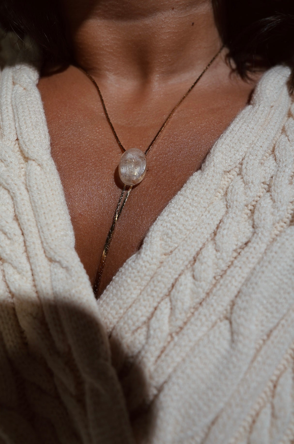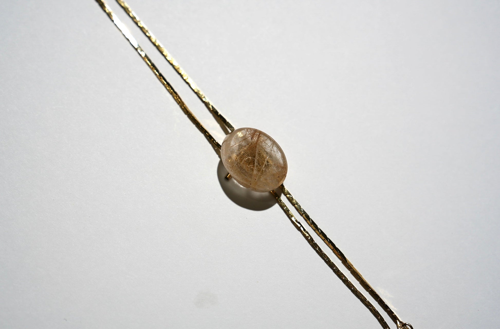 Gold-plated vintage chain with natural Rutilated Quartz cabochon · adjustable bolo