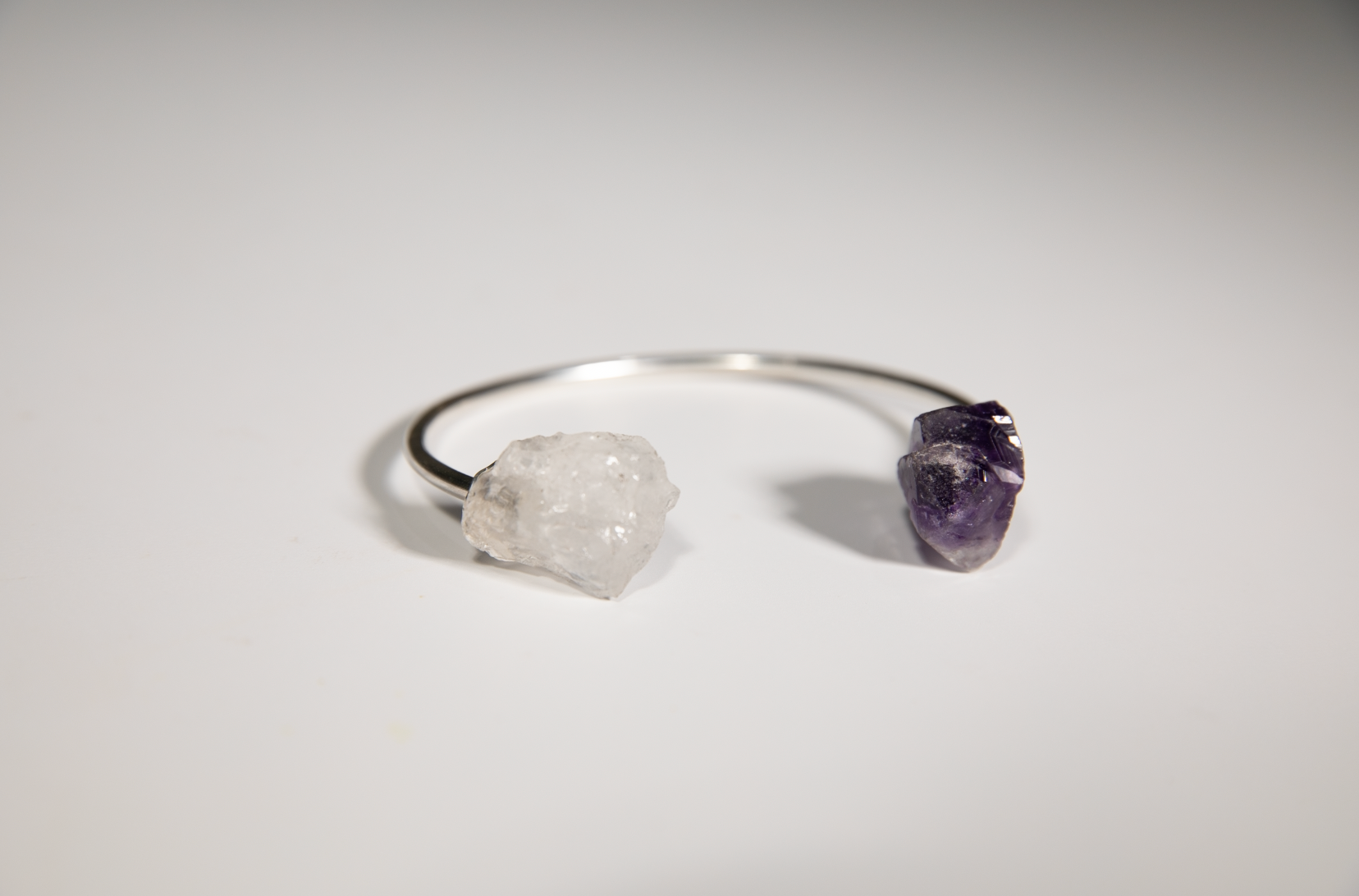 I've Got My Psychic on Speed Dial Cuff Bracelet · HEAL · Amethyst & Clear Quartz · Silver